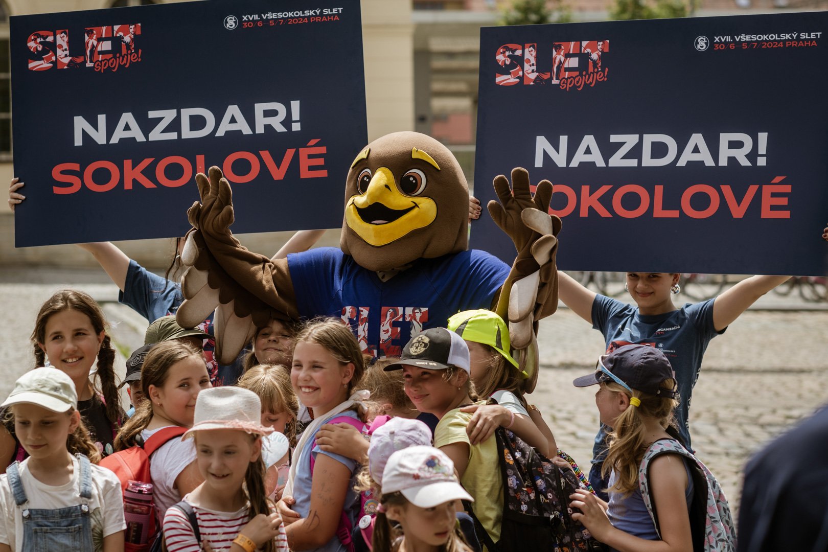 Ty, kteří dorazili v brzkém sobotním odpoledni na vlakové nádraží Praha-Vršovice, vítal na nástupišti maskot sletu sokolík Pepík. Nadšeně se s ním zdravili děti i dospělí a žádaným suvenýrem byla společná fotka.